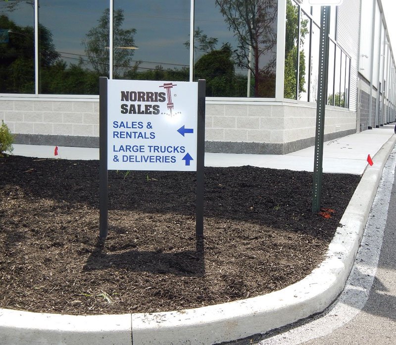 Norris Sales of Plymouth Meeting, Montgomery County, PA, approached Elmark Sign & Graphics almost a year ago about the sign needs for their building on Conshohocken State Rd. Elmark’s team of designers and installers worked diligently with Norris Sales and their contractors to come up with ways to properly brand this wonderful new building. Below are some pictures of the end result—three sets of LED illuminated channel letters, dimensional letters above their canopies, aluminum directional signage, vinyl window lettering, and all of the interior signage.